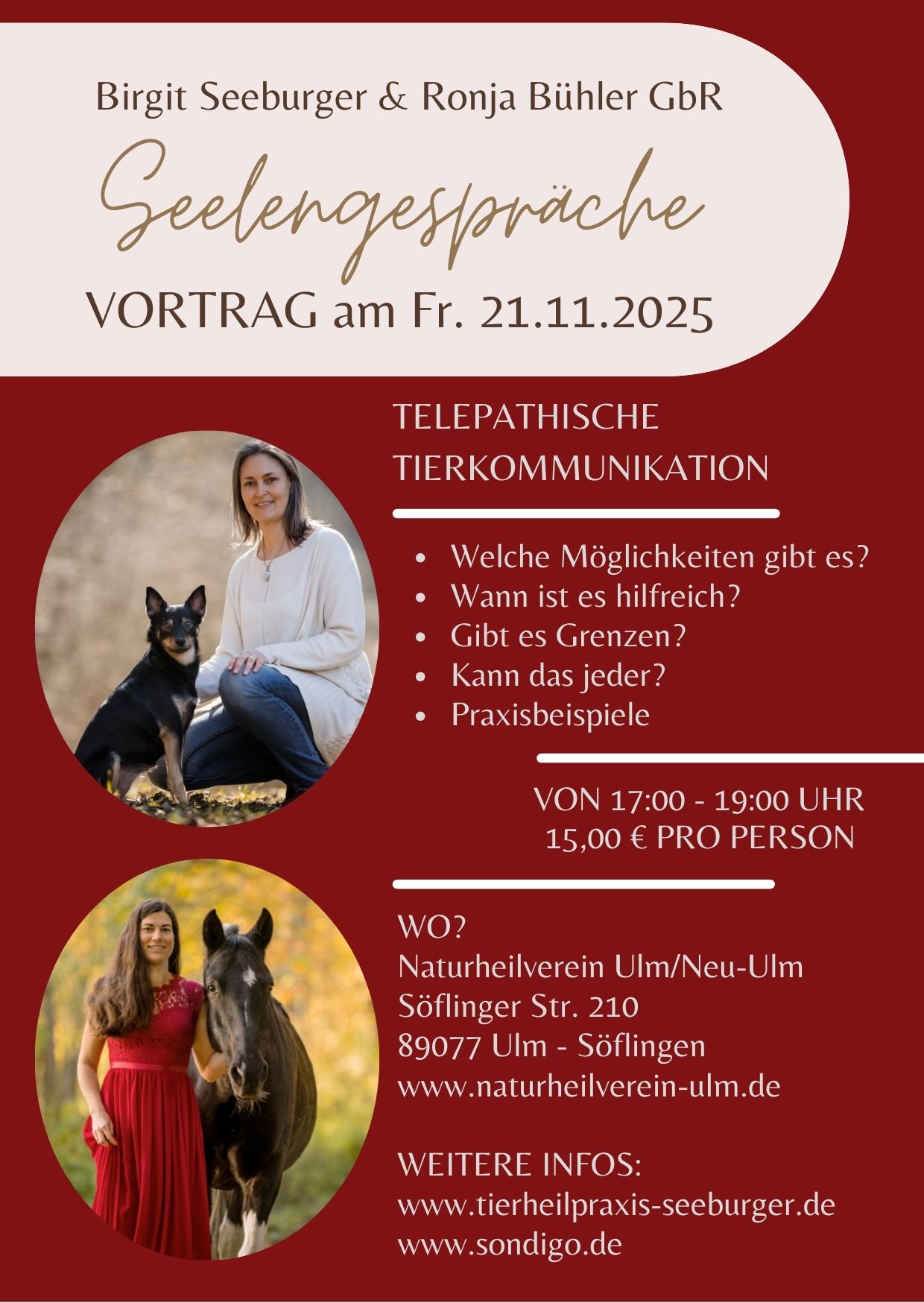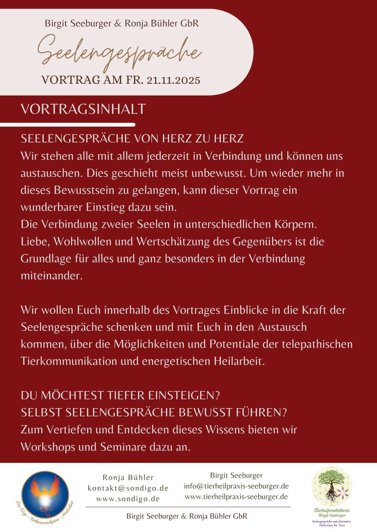 am 22.-23.11. an für das Basisseminar Tierkommunikation – näheres findest du unter Termine und Seminare/Vorträge